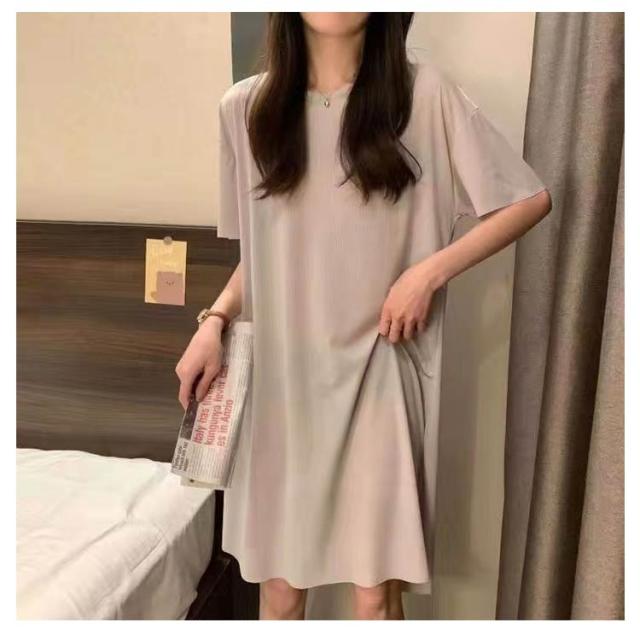 ルームワンピース 膝丈 レディース 夏服 涼しい ルームウェア 軽量 体型カバー 薄手 半袖 部屋着 夏用 可愛い 女性 無地 大きいサイズ ナイトウエア 春夏秋 ルームワンピース ストレッチ性 パジャマ 快適 寝間着 リラックスウェア ギフト プレゼント