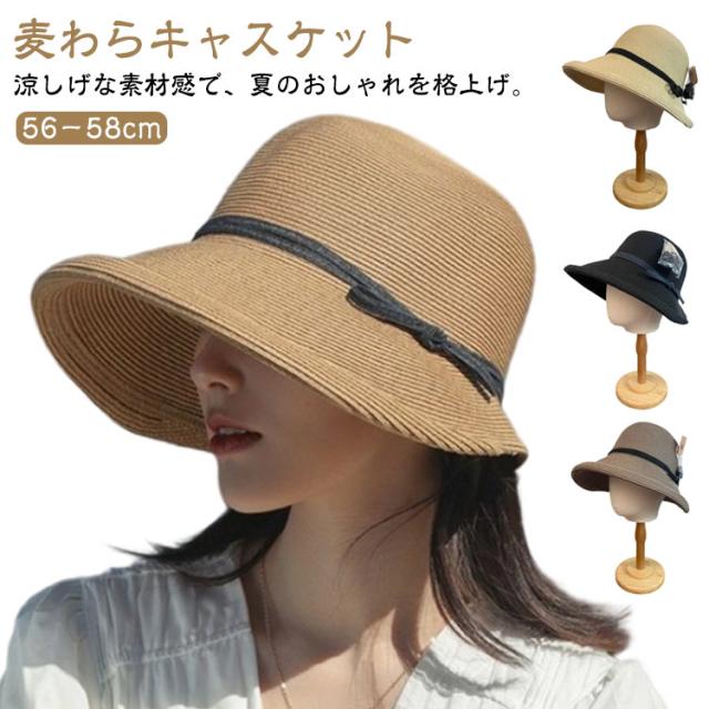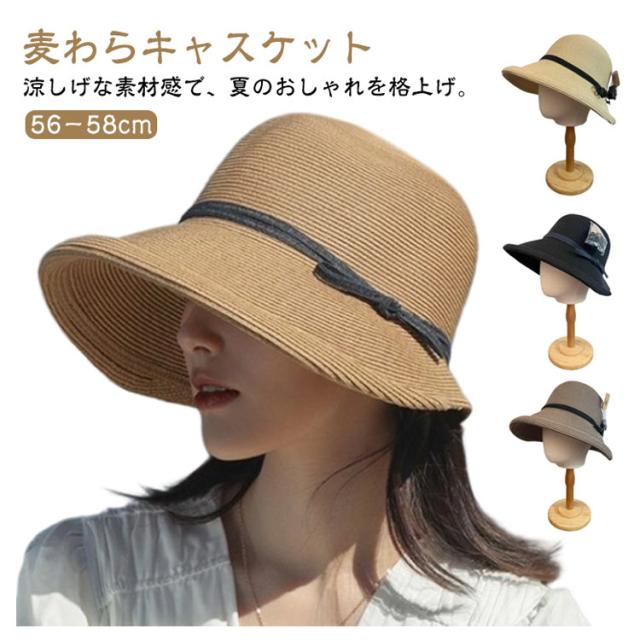 深め キャスケット つば広 レディース 麦わら 麦わら帽子 紫外線カット 日除け帽子 春夏 ハット つば広帽子 UVカット 涼しい 小顔効果 遮光 通気性 バケットハット 麦わら 夏 日よけ かわいい リボン付き 春 おしゃれ 通勤 旅行 ビーチ リゾート 海辺 川