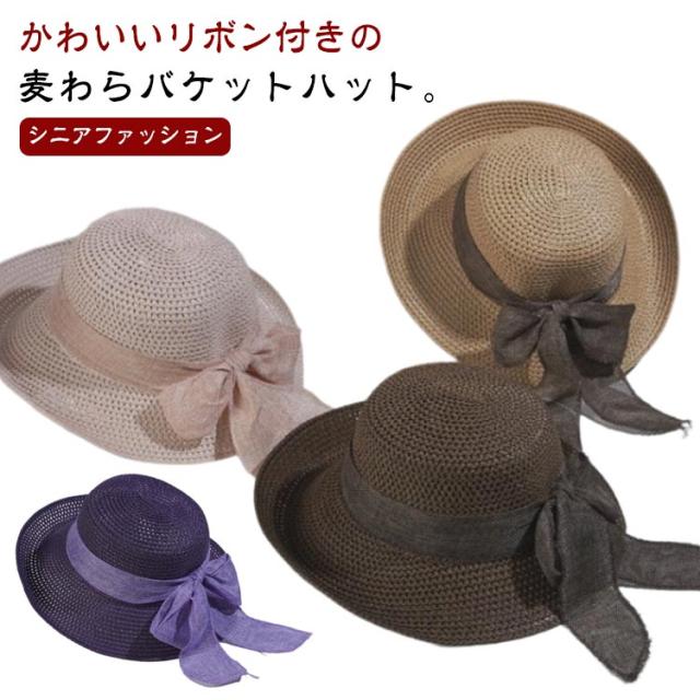 | かわいいリボン付きの麦わらバケットハット。【シニアファッション】 コンパクトに折り畳めるので、旅行などの持ち運びにも◎ 広めのつばなので夏の強い日差しにも◎ 通気性も良く、春夏の日焼け対策に最適なアイテムです。 普段使いはもちろん海、公園などのアウトドアにも雰囲気がピッタリです。 | |