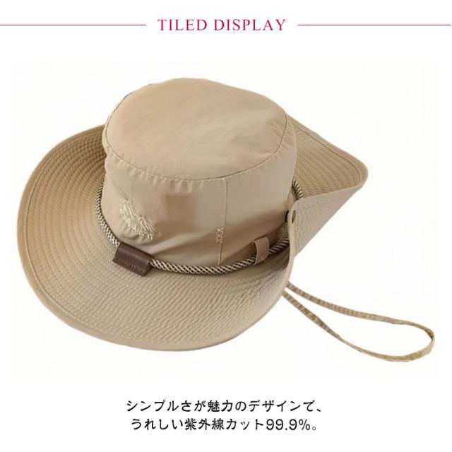 | ナイロン生地で作られた夏らしい生地感のサファリハットが登場。 シンプルさが魅力のデザインで、うれしい紫外線カット99.9%。 つばが長めで洗練されたシルエットで、顔周りをすっきり見せる効果があります。 両サイドのボタンでシルエット変更可能 柔らかく小さく折りたたんで持ち歩いていただくのも◎ 調節可能な顎紐付きで風が吹いても帽子が飛ばされるのを防ぎます。 様々なスタイルに合わせやすく、どんなシーンでも活躍すること間違いなしです! | |