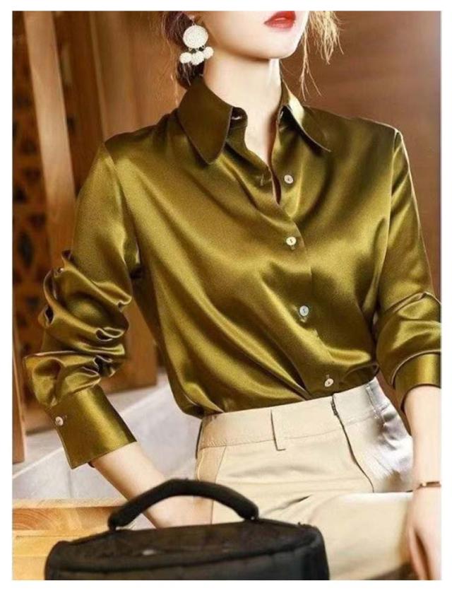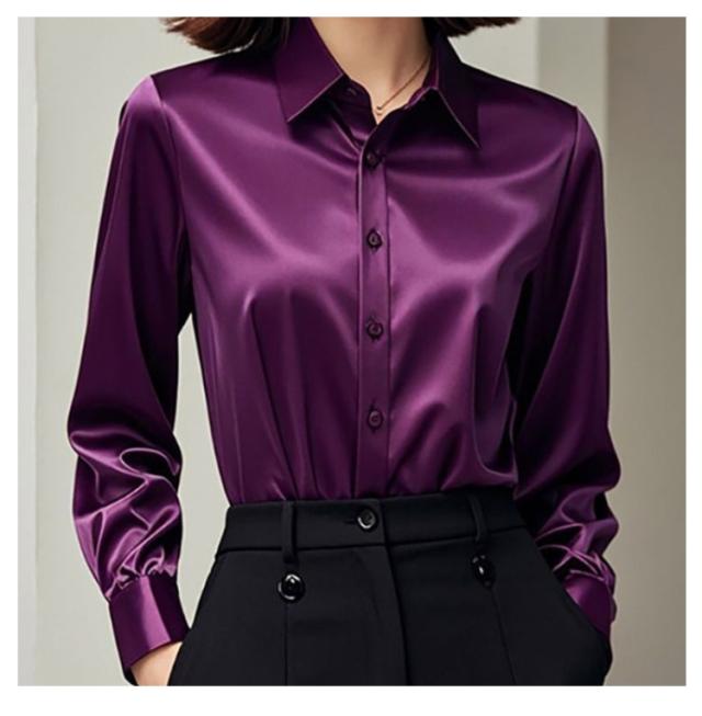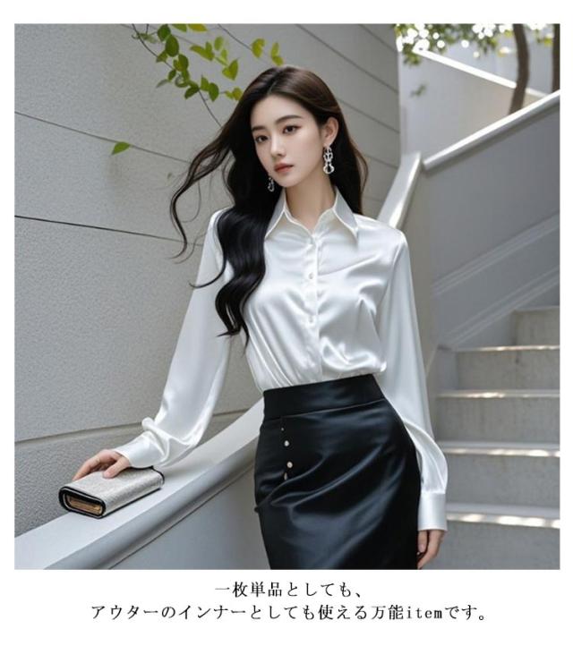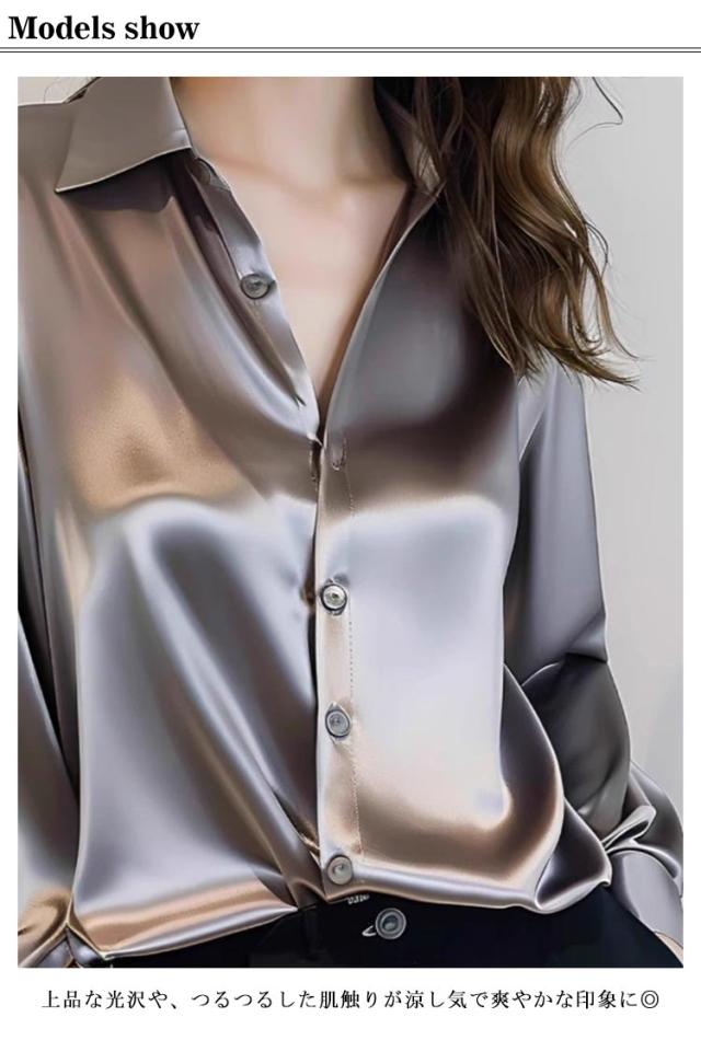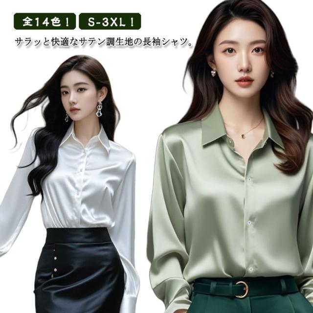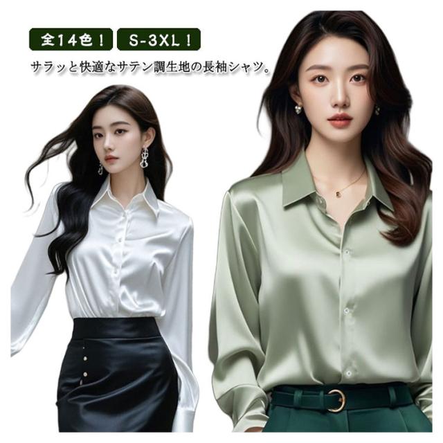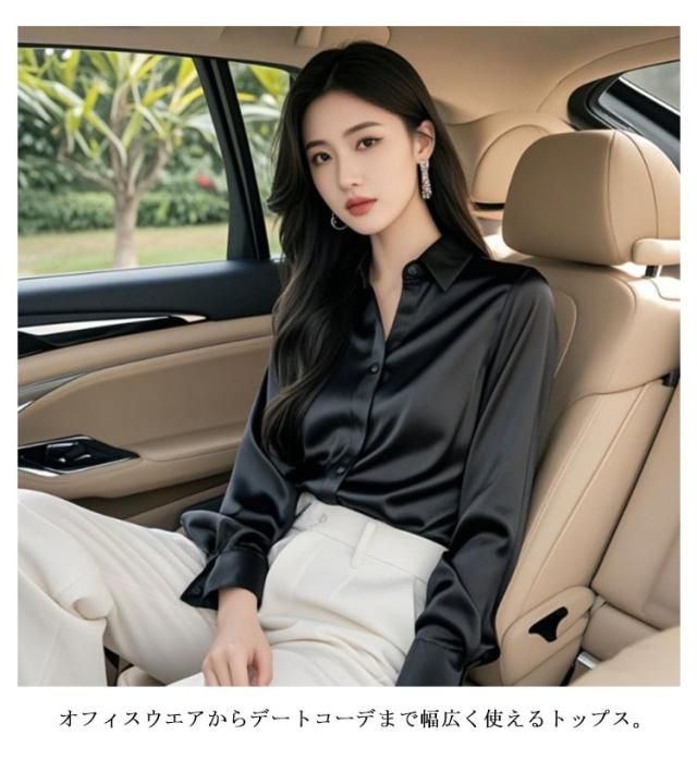 サテン調 光沢 フォーマル レディース ブラウス 長袖シャツ カジュアル つるつる 無地 ワイシャツ サテン インナー 春服 オフィス OL 通勤 おしゃれ スーツ 女性 無地 サテン調 ビジネス 柔らかい