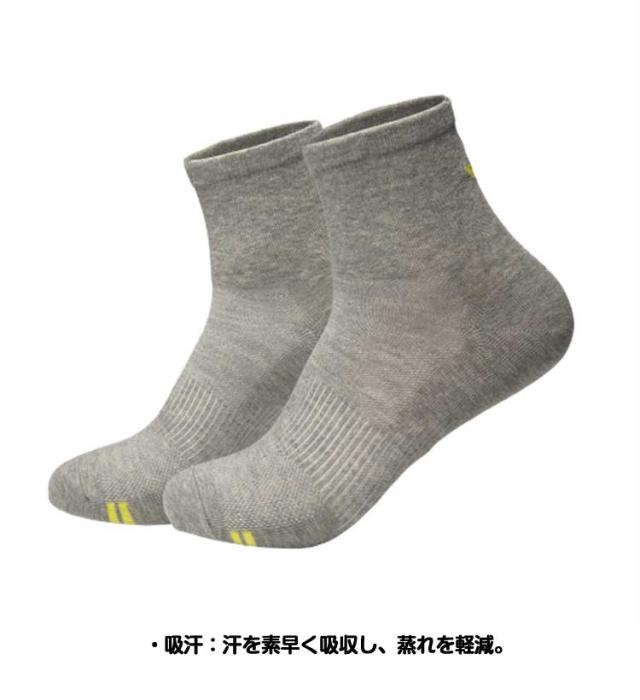 | ・消臭・抗菌効果:臭いの原因菌を抑制し、長時間清潔さをキープ。 ・吸汗:汗を素早く吸収し、蒸れを軽減。 ・通気性:メッシュ構造で足元の風通しをサポート。ムレにくく快適です。 ・肌触りが柔らかく、快適で耐久性に優れたソックスです。 | |
