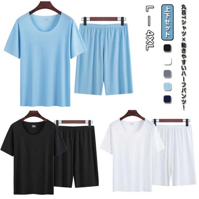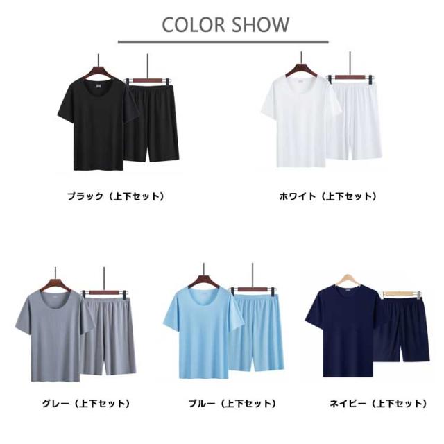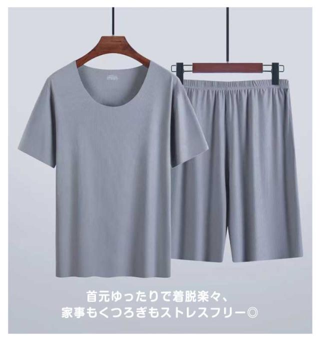 アイスシルク ハーフパンツ パジャマ パジャマ 半袖 夏用 メンズ 半袖 上下セット 半ズボン パジャマ 無地 涼しい ルームウェア 部屋着 襟なし 快適 男性 薄手 シンプル おしゃれ 父の日 誕生日 ギフト