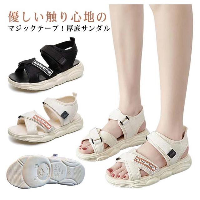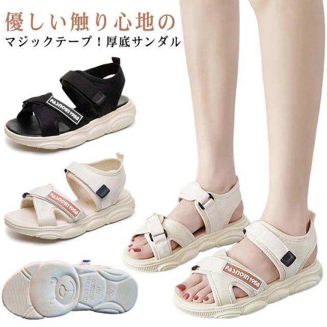 歩きやすい 厚底 マジックテープ サンダル リラックス 軽量 スポーツサンダル コンフォートサンダル ダッドシューズ スポサン レディース 厚底サンダル ベルクロ 履きやすい ビーチサンダル 美脚靴 滑り止め