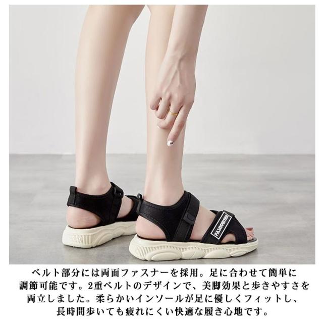 | 優しい触り心地のマジックテープ!厚底サンダル かかとも靴擦れしにくい柔らか素材です。 抜群のクッションで衝撃を吸収! 厚くても軽い、ふわふわの履き心地でコスパ最高です。 ベルト部分には両面ファスナーを採用。足に合わせて簡単に調節可能です。2重ベルトのデザインで、美脚効果と歩きやすさを両立しました。柔らかいインソールが足に優しくフィットし、長時間歩いても疲れにくい快適な履き心地です。 アウトドアからファッションシーンまで多方面にわたり人気を集めます。定番のデニムやパンツスタイルはもちろん、フェミニンなスカートやワンピースコーデの外しアイテムとしても相性抜群◎ | |