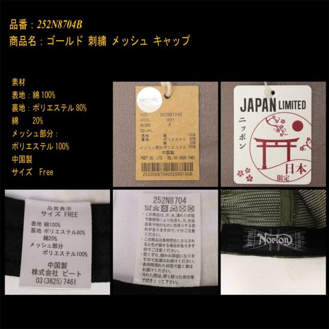 Norton ノートン 服 帽子 キャップ 252N8704B ゴールド 刺繍 メッシュキャップ メンズ アメカジ メンズ アパレル