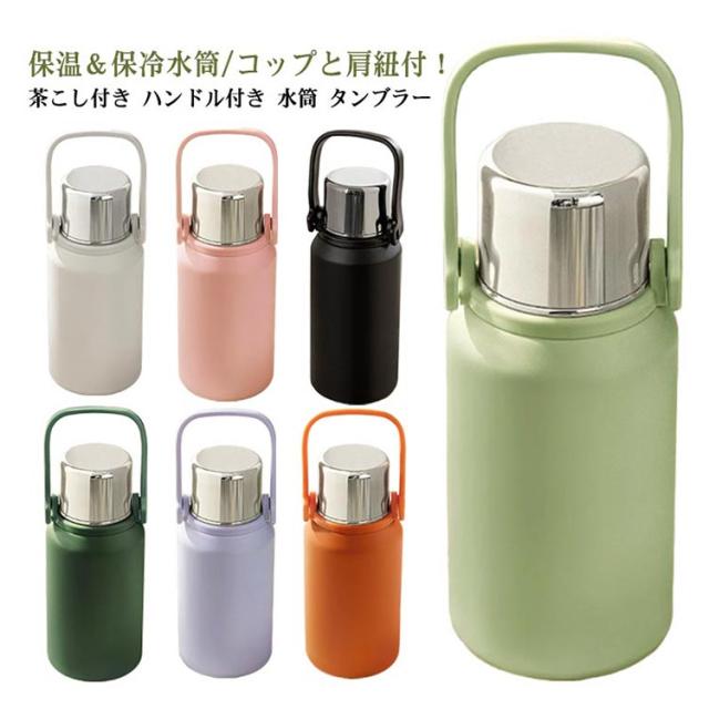 | 保温&保冷水筒/コップと肩紐付!茶こし付き ハンドル付き 水筒 タンブラー いろんなシーンで大活躍!ホーム、オフィス、アイスドリンク、バーベキュ、運動やアウトドアなど幅広いご使用いただけます。自分用だけでなく、プレゼントとしても人気が高い! 真空2重構造を採用しているので保冷、保温性は抜群! 大容量で毎日の水のニーズを補給することができます。 保冷・保温に優れたステンレスボトルです。温かい状態も冷たい状態も長時間キープすることができます。 どんな飲み物・シーンにも!夏のビール、アイスコーヒー、また冷たい麦茶に。冬にホットコーヒー、暖かいお湯にも!オールシーズンでお使うことはできます。 ベルトがついているため、持ち運びに楽々!どこでも簡単に移動できます。取り外せるショルダーストラップが付いているのでお子様用にも◎ | |