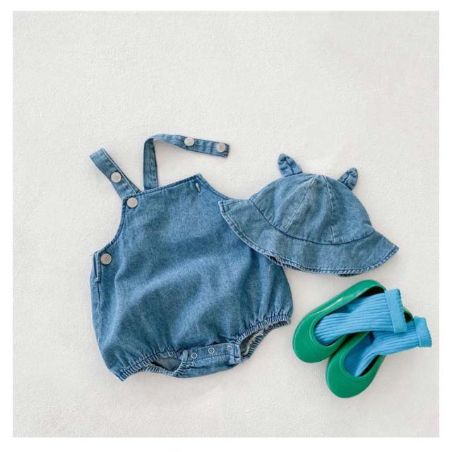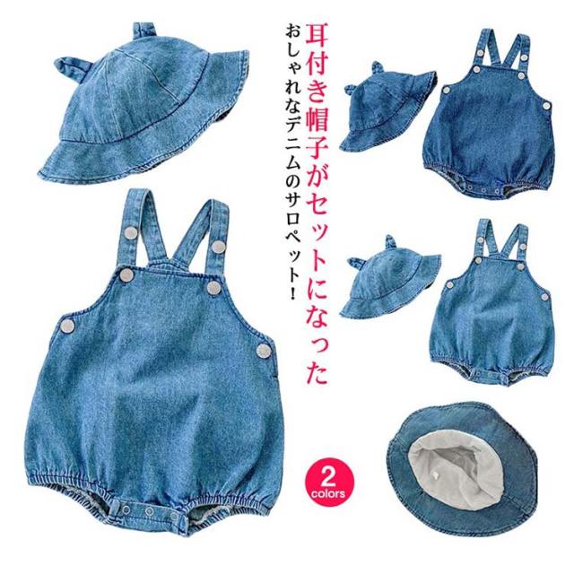 | 耳付き帽子がセットになったおしゃれなデニムのサロペット! かわいいシンプルデザインのデニムサロペットです。 丈夫で型崩れしにくいため、ご家庭でのお洗濯も簡単。 定番のデザインで男の子にも女の子にも合わせやすいです。 | |