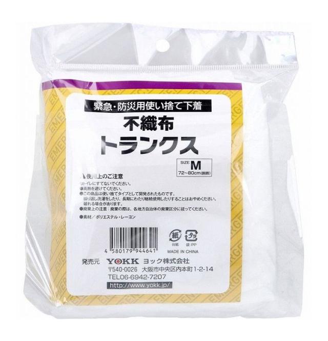 緊急・防災用使い捨て下着 不織布トランクス 前あきタイプ Mサイズ 2枚入 男性下着