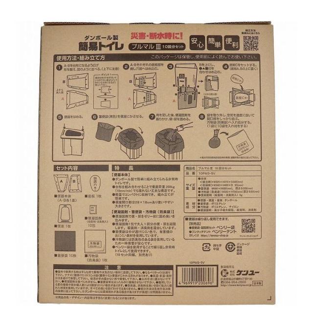 ダンボール製簡易トイレ プルマル3 10PM3-5V 10回分セット 簡易 携帯トイレ【送料無料】
