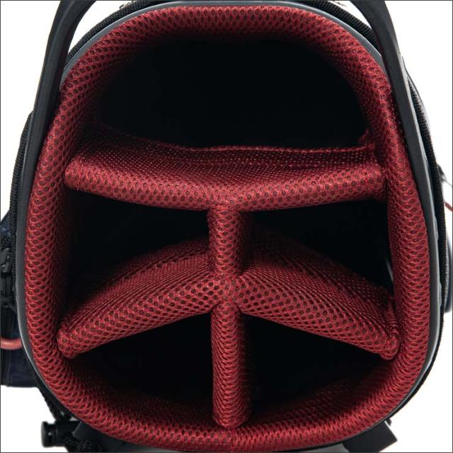 9型口枠5分割セパレーター数3分割でクラブの整理がしやすく、アクセサリーポケットとペットボトルポケットを備え、合計6つのポケットが用意されています。
