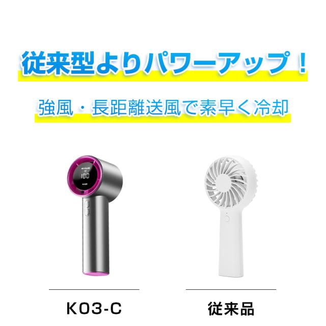 コンパクトなサイズ(56×61×161mm)ながら、強力なターボファンを搭載し、驚くほどの風量を実現しました。従来の小型ファンよりも広範囲に風を送ることができ、暑い場所でもすぐに体感温度を下げます。持ち運びに便利でありながら、パワフルな性能を兼ね備えたバランスの良い設計です。