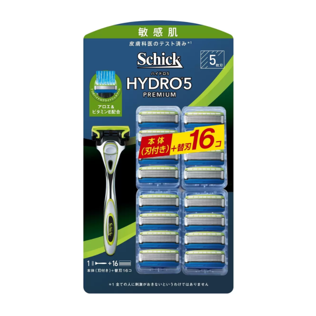 Schick HYDRO5 PREMIUM シック ハイドロ5 プレミアム 本体(刃付き) 替刃16個 5枚刃 敏感肌用