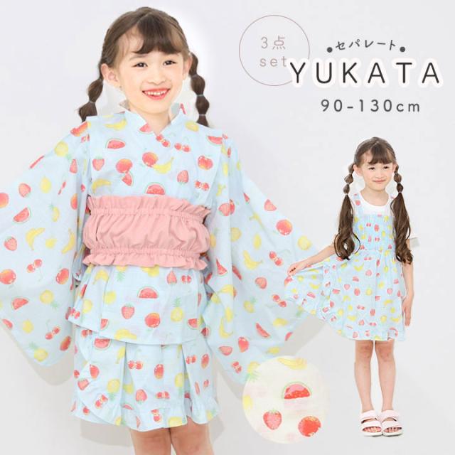 浴衣 子供 セパレート 上下セット 女の子 作り帯 浴衣3点セット サンドレス ワンピース ひざ丈 浴衣ドレス 90cm 100cm 110cm 120cm 130cm 95cm 簡単 花火大会 夏祭り 夏 幼稚園 保育園 小学生 果物 送料無料