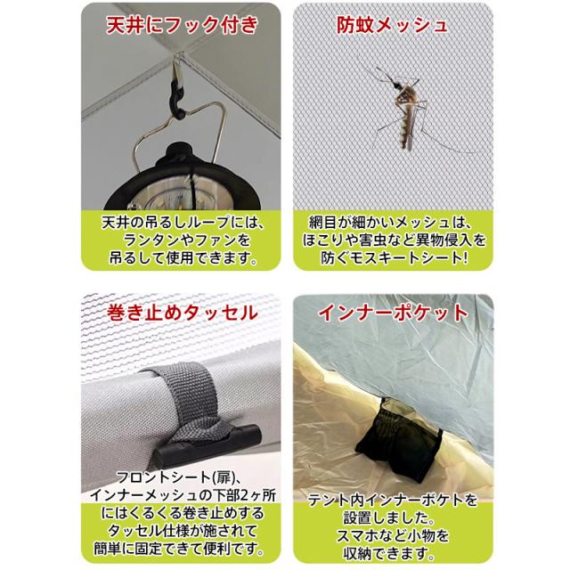 【通気性抜群】左右に小窓2つ、メインメッシュスクリーンの2重構造により、開放感を得られると同時に、通気性を確保でき、熱気や湿気を逃がす事も可能になります。