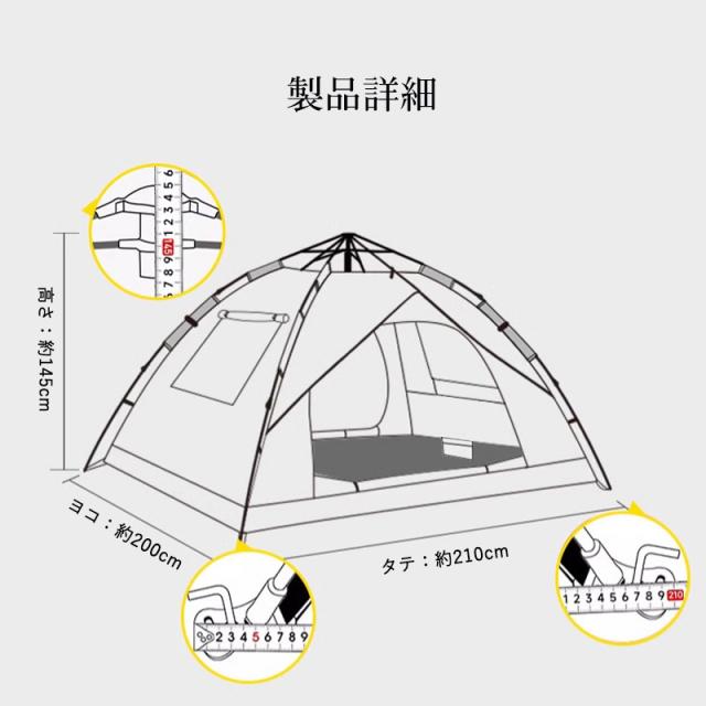 即納 テント ワンタッチテント ドーム型テント フルクローズ 3人〜4人用 ワンタッチ 防水 軽量 UVカット キャンプ 収納袋付 組立簡単 持ち運び 新生活応援
