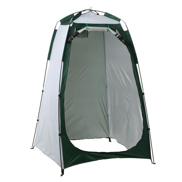 このテントはジッパー付きの窓と大きなドアが特徴で、アウトドア活動中のバスルーム、トイレ、更衣室としての使用に最適です。