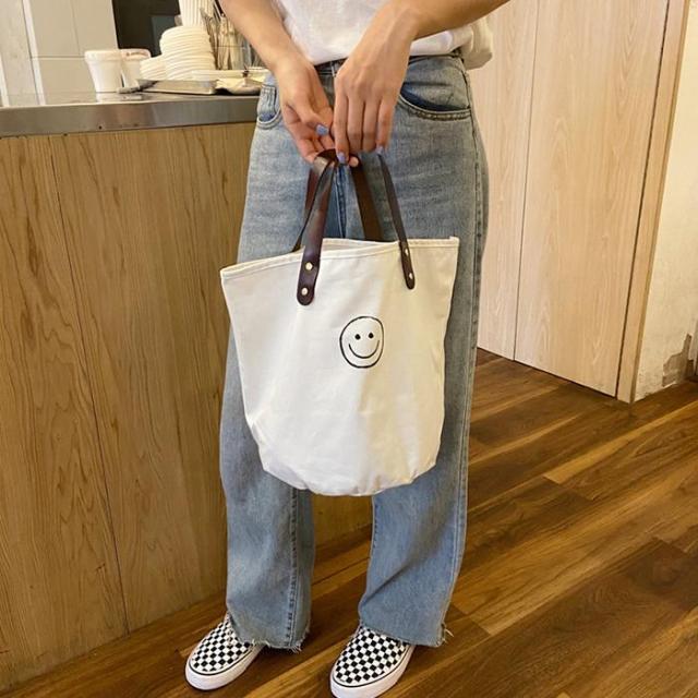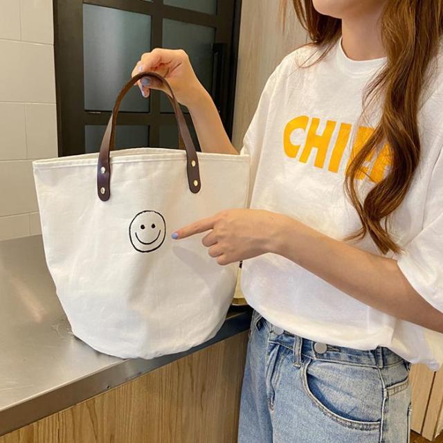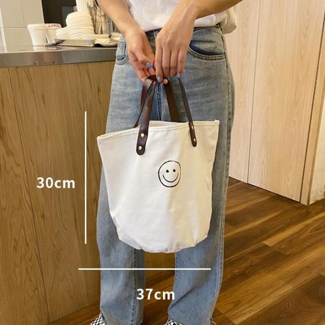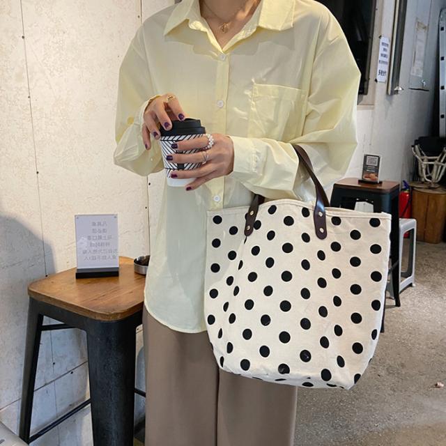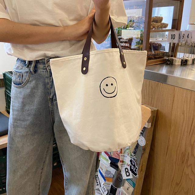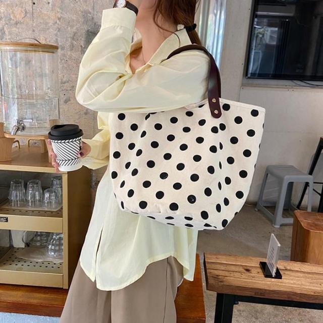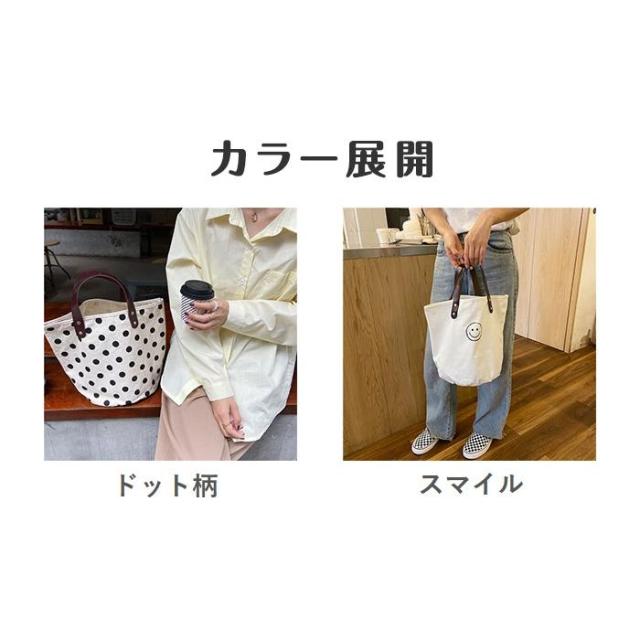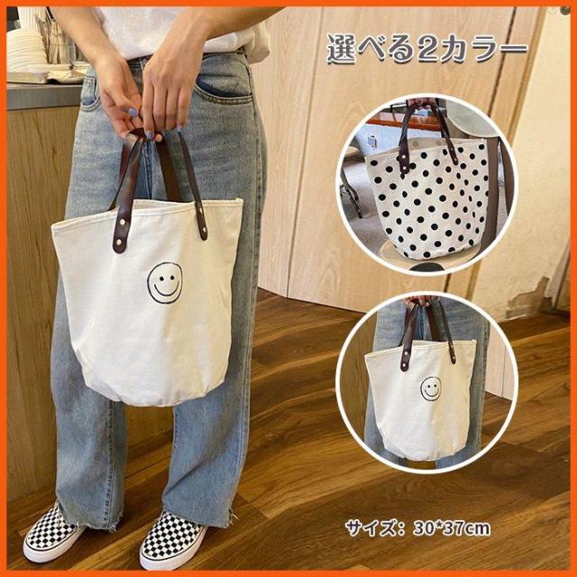トートバッグ キャンバスバッグ キャンバス ドット柄 水玉 スマイル にこちゃん バッグ シンプル かばん カジュアル 通勤 通学 お買い物 ビッグ 大容量