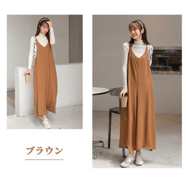 サロペット レディース キャミソール オールインワン ワイドパンツ
