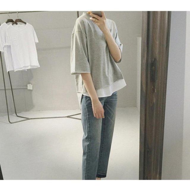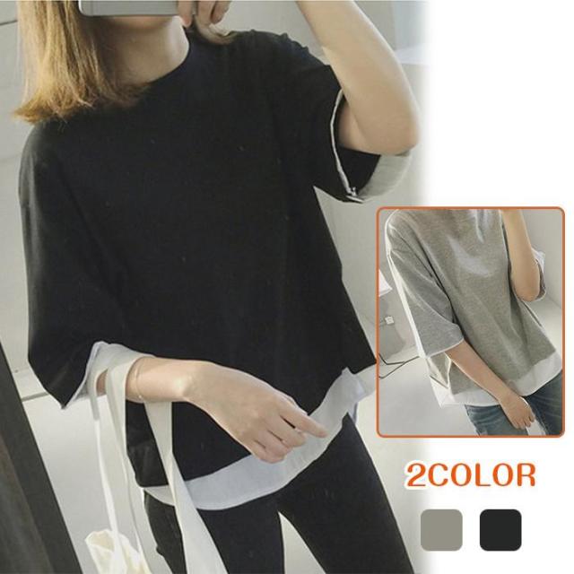 Tシャツ レディース tシャツ 半袖 トップス 重ね着 無地 シンプル 大人 カジュアル