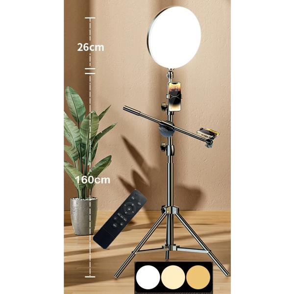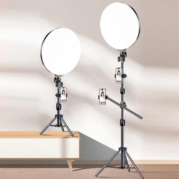 三脚とブームアーム付きのLEDリングライト 写真スタジオ 電話ランプ ビデオ YouTube