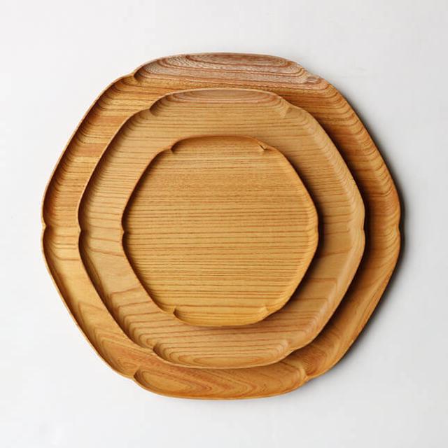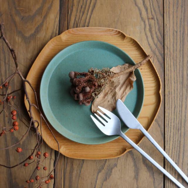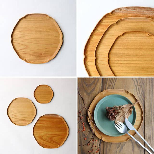 ![]() 四十沢木材工芸 KITO 雪輪盆 中1947年に石川県輪島市にて漆器用素地の木地屋として創業した四十沢(あいざわ)木材工芸。 木がお皿やお盆に使えるような大きさになるまで100年ほどかかります。 無垢の木に閉じ込められた100年の力を100年以上使えるよう削りだし、「木の麗しさ」を日常に提供したいと考えています。 木を慈しみ、豊かな山林を未来に手渡せるような作り方・生き方を選択します。 「KITO(きと)」は、木といっしょに日常を過ごせるようにと名付けた、木のプロダクトシリーズ。 無垢の木だけが発する心地よさは、安らぎのある暮らしに欠かせないもの。 日常に木の心地よさを提供し、山林に畏敬と感謝を寄せられるような製品を作っています。 ![]() ![]() こちらは雪の結晶の形から生まれた、雪輪盆(ゆきわぼん) 中。 顕微鏡のない時代から雪の結晶は「六花」とされていました。 雪輪盆の形は六角形の雪の結晶の輪郭を曲線でつないだものです。 ![]() 中サイズはいくつかのグラスを運んだり、一人分のティープレートとして使いやすい大きさです。 ガラス塗料で仕上げられているので、直接食べ物を置くことも出来ます。 ※水分の多いもの、油分の強いものを長時間のせると跡が残る場合があります。 ![]() 人気の輪花盆よりも、大きいものがあったらとの思いから試作を重ねて出来上がった、「雪輪盆」。 和にも洋にも会うため、乗せるものを選ばずお使いいただけます。 おやつの時間からお客様のおもてなしまで様々なシーンで活躍するお盆です。 ※素材には色むらや木の幹の分かれ目などが混じったものがあります。木目はひとつひとつ異なりますので、ご了承の上お買い求めください。木の個性としてお楽しみいただければと思います。 木の器のお取り扱いについて 食べ物を直接のせていただいても大丈夫ですが、水分の多いもの、油分の強いものを長時間のせると、木の導管にしみこみ跡が残る場合がありますのでご注意ください。 ・汚れた場合のお手入れ 「ガラス塗料仕上げ」→ 汚れが気になったら、かたく絞った布巾で拭いてください。水洗いもできます。油汚れが気になる場合は、柔らかいスポンジに中性洗剤をつけてやさしく洗ってください。洗った後はすぐに水分を拭きとってください。 ・商品が反ってきた場合 無垢の木は温度変化や乾燥状態で変形してきます。同じ面ばかり空気に触れていると乾燥し反りが起きてきます。 その場合は、一晩裏返して置くと、反りが戻ってきます。それでも反りが戻らない場合は、湿らせた布などの上に裏返してみてください。 また、極度に乾燥した場所、直射日光や冷暖房の風があたるところは反りの原因となりますので避けてください。 ・商品が割れてしまった場合 パキッと割れてしまった場合、そのかけらが全てあれば元通りに直せる可能性があります。四十沢木材工芸HPより直接ご連絡ください(お客様のご使用による修理は有料になります)。 初期不良の場合は弊社(マタン楽天市場店)へご連絡ください。 、 もご用意ございます。 その他四十沢木材工芸の商品は から。