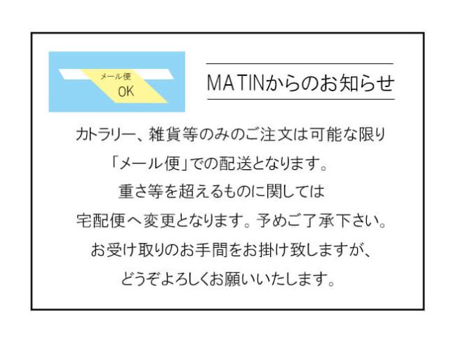 ネコポスをご指定の場合でも、その他商品と一緒にお買い上げの場合は宅配便での配送にさせていただく場合がございますので予めご了承ください。