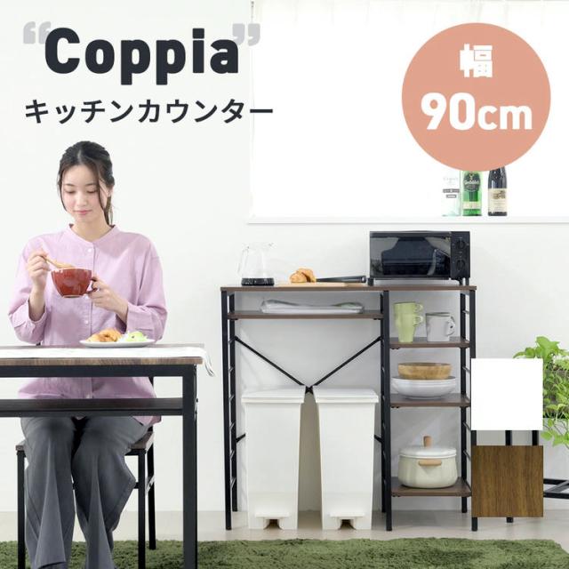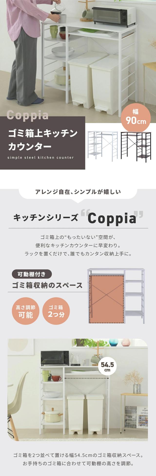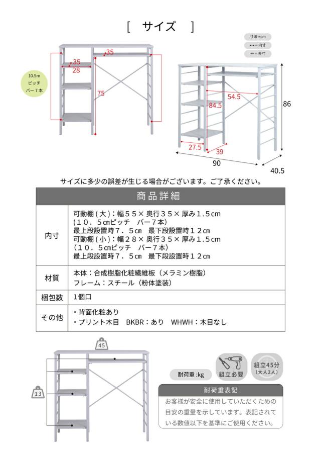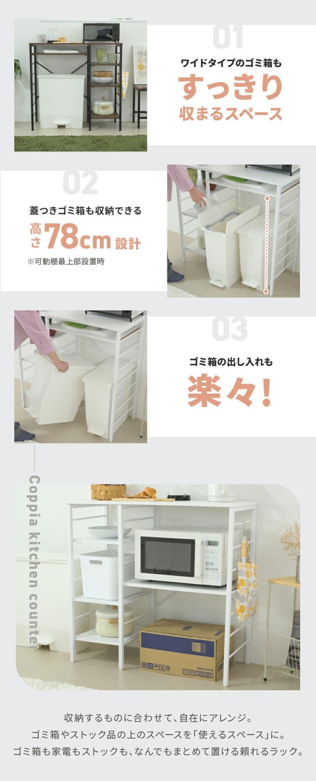 キッチンカウンター ゴミ箱スペース キッチンラック 食器棚 幅90 奥行40 高さ85 レンジ台 間仕切り 棚 スリム ラック 作業台 食器 家電 収納 天板 ホワイト 家具 引っ越し 一人暮らし 新生活 UNI-0012