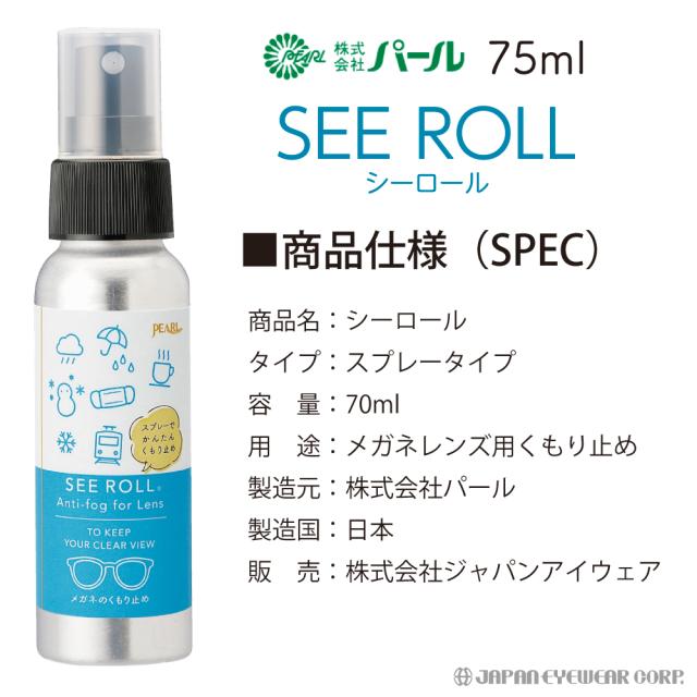 くもり止め 曇り止め スプレー メガネ 眼鏡 マスク パール くもり止め スプレータイプ 70ml SEE ROLL シーロール レンズ ケア メガネのくもり止め 曇止め メガネクリーナー PEARLレンズ 汚れ くもりどめ