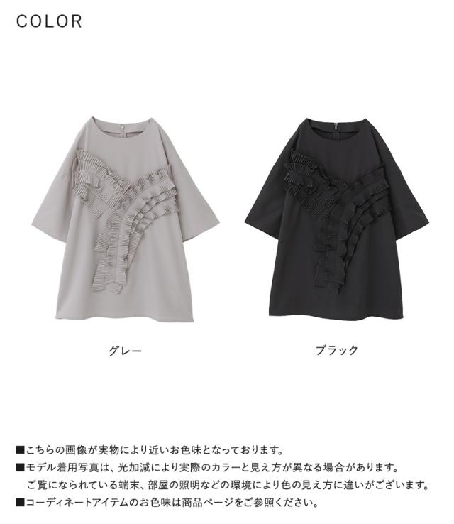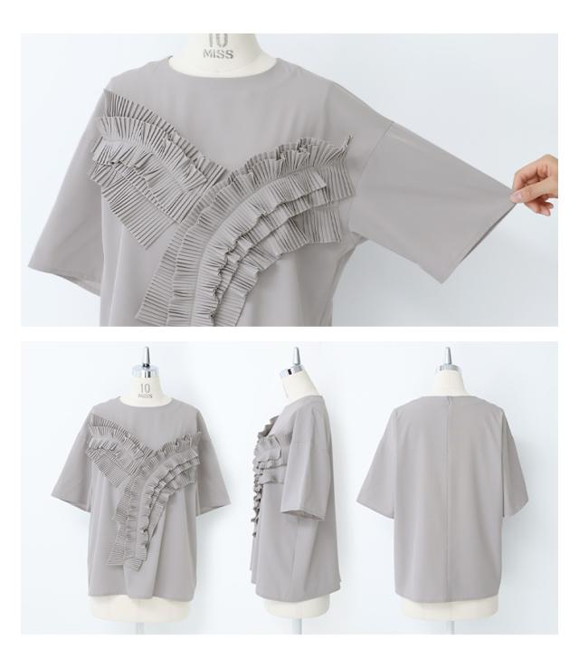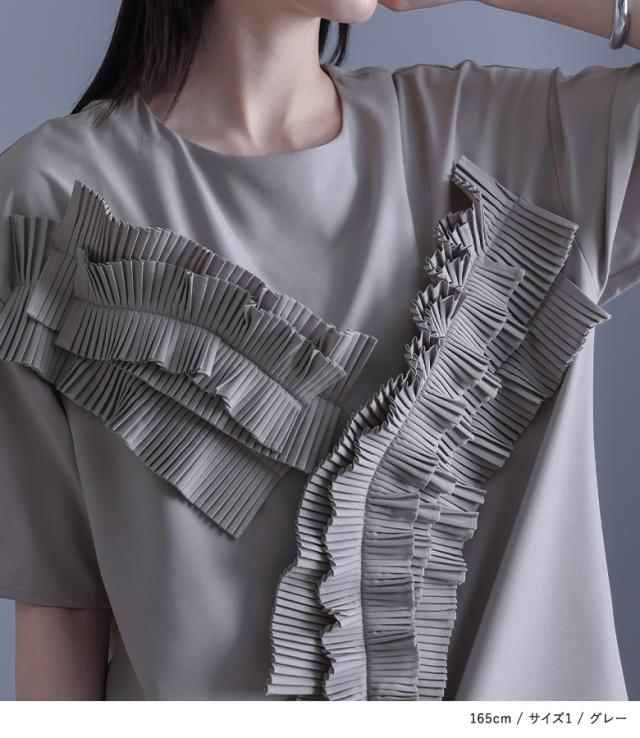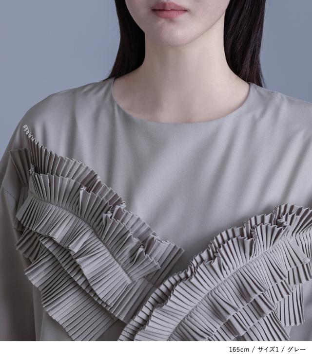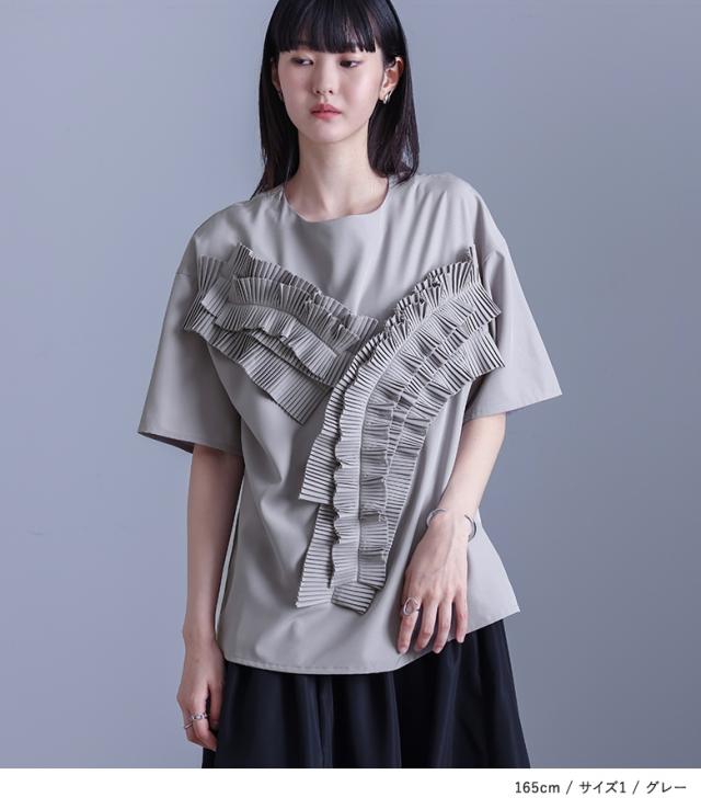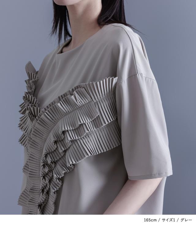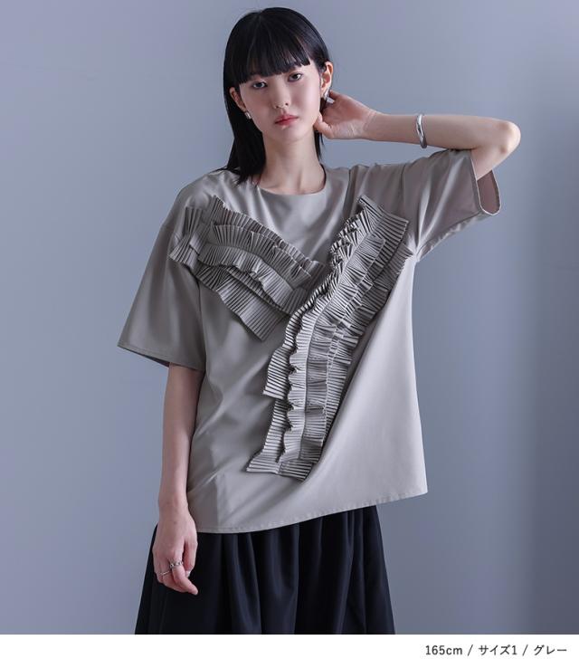 ブラウス レディース トップス シャツ 半袖 プリーツ加工 ファスナー プルオーバー クルーネック 二の腕カバー 春 夏 【TP】 Tシャツ 五分袖 ショート丈 ミディ丈 ミドル丈 ドロップショルダー フリル プリーツ 無地 ドッキング レイヤード 重ね着 おうちで洗える 秋 カジュアル シンプル モード マニッシュ キレカジ フェミニン ゆったり ゆる Sサイズ Mサイズ Lサイズ LLサイズ 3Lサイズ XLサイズ ぽっちゃり 体型カバー 大きいサイズ プラスサイズ 10代 20代 30代 40代 50代 60代 女子会 オフィス 通勤 通学 お買い物 お出掛け 旅行 リゾート レジャー おしゃれ お洒落 トレンド 流行 kOhAKU コハク 大人女子 大人可愛い お洒落可愛い 大人カジュアル ラフ スタイリッシュ 洗練 エッジィ 上品 きれいめ かっこいい osharewalker オシャレウォーカー おしゃれうぉーかー グレー 灰色 ブラック 黒[ID]12tn0ww[kOhAKUプリーツドッキングブラウス]