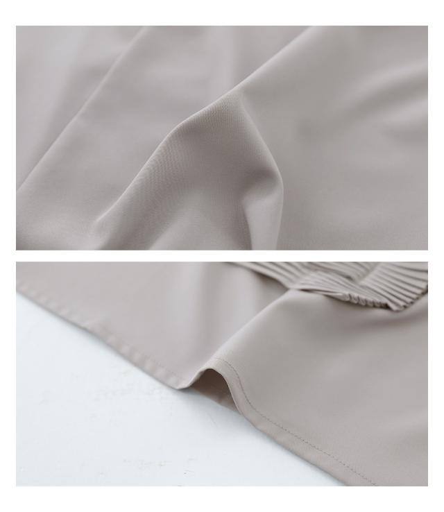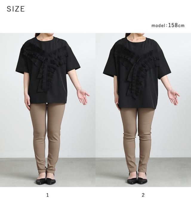 ■デザイン プリーツ加工をかけたパーツを3枚重ね、配置したデザインブラウス。プリーツパーツは絶妙なカーブを描き、長さや幅、見える分量を微調整することでバランスよく仕上げています。きれいめな印象をプラスできる後ろ開きファスナー付きで、着脱もしやすい仕様に。袖は二の腕がしっかり隠れる丈感で、安心感のある一着です。 ■コーディネート フロントは印象的なデザインでありながらもシンプルなカラー展開なので、スカート、パンツ問わずコーディネートしやすいアイテムです。上品な素材感なので、スカートやスラックス合わせできれいめのスタイリングはもちろん、Tシャツ感覚でカジュアルにも着こなせます。 ■素材 ポリエステル100%のさらりとした肌触りのブラウス生地。程よい厚みで、春夏の着こなしに最適です。 |