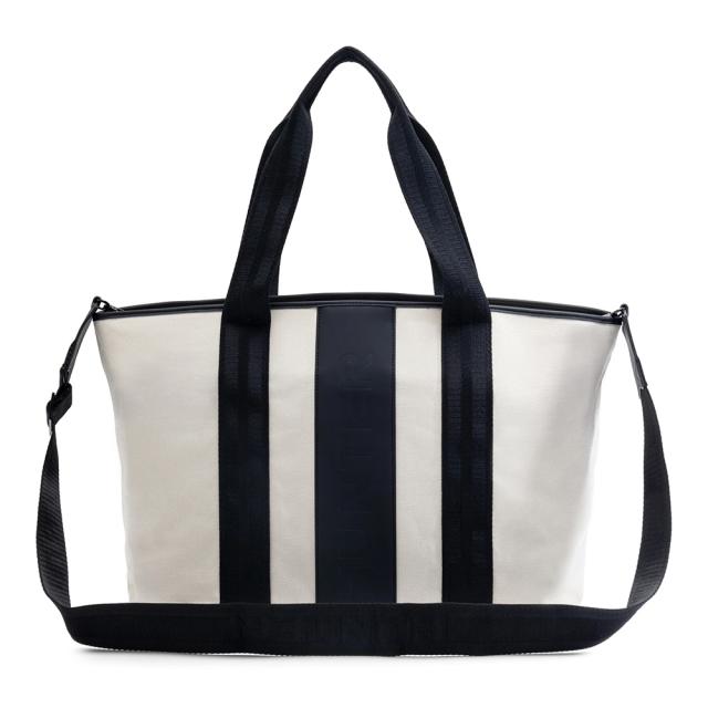 カジュアルでありながらエレガントなデザインのトートバッグは、取り外し・長さ調節可能なストラップ付きで、肩掛けや斜め掛けでもお使いいただけます。