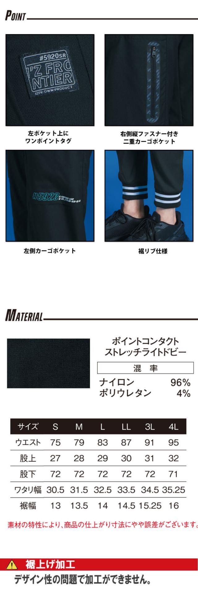 アイズフロンティア IZ FRONTIER 春夏 作業服 接触冷感 数量限定 スタジャンテイストナイロンストレッチジョガーパンツ 5923S 2025年春夏新作