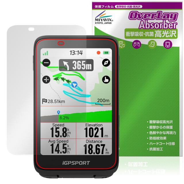 iGPSPORT BiNavi 保護フィルム OverLay Absorber 高光沢 for アイジーピースポーツ サイクルコンピューター 衝撃吸収 ハードコート 抗菌