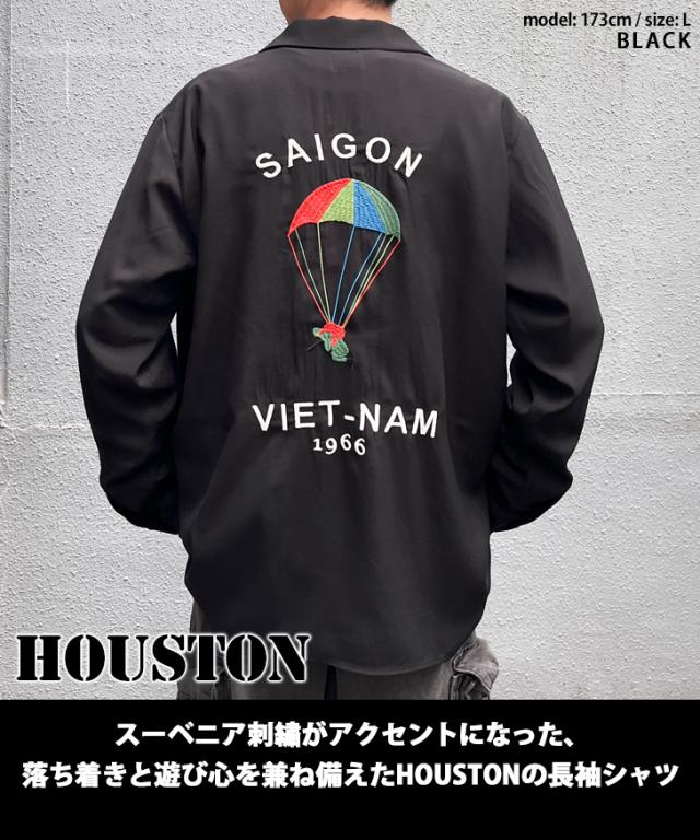 ヒューストン HOUSTON VIETNAM PARACHUTE スーベニア長袖シャツ 41157 トップス メンズ 長袖 アウター ジャケット カジュアルシャツ ミリタリー シャツ 刺繍 虎 ミリタリー ブランド 長袖シャツ 羽織り 上着 とら タイガー スーベニア刺繍 ポケット レイヤード 重ね着 着回し アメカジ カジュアル ストリート 41157 SOUVENIR SHIRT VIETNAM PARACHUTE シャツ レーヨンベトシャツ ベトナムシャツ ベトシャツ 刺しゅう SAIGON 落下傘柄 ゆったり ラフ ポケット付き 襟 衿 襟付き 衿付き 薄手 薄い さらさら サラサラ 男性 男子 父 パパ 男の子 紳士 息子 学生 社会人 中学生 高校生 大学生 大人 10代 20代 30代 40代 50代 60代 通勤 通学 学校 ショッピング 買い物 レジャー 普段着 仕事 オフィス フェス ライブ コンサート 野外 スポーツ 運動 旅行 トラベル アウトドア キャンプ ヒップホップ HIPHOP ダンス かっこいい クール おしゃれ お洒落 オシャレ 可愛い かわいい 韓国ファッション ストリート ヴィンテージ風 ギフト プレゼント 贈り物 誕生日 誕プレ お祝い 父の日 春 夏 秋 冬 ロングシーズン アニマル ミリタリー アメカジ 動物 虎柄 ブラック 黒
