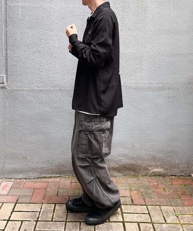 通常のミリタリーシャツでは見られないレーヨン素材を使用。