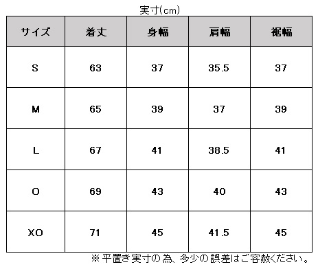 サイズ:身長 / 胸囲 / 胴囲