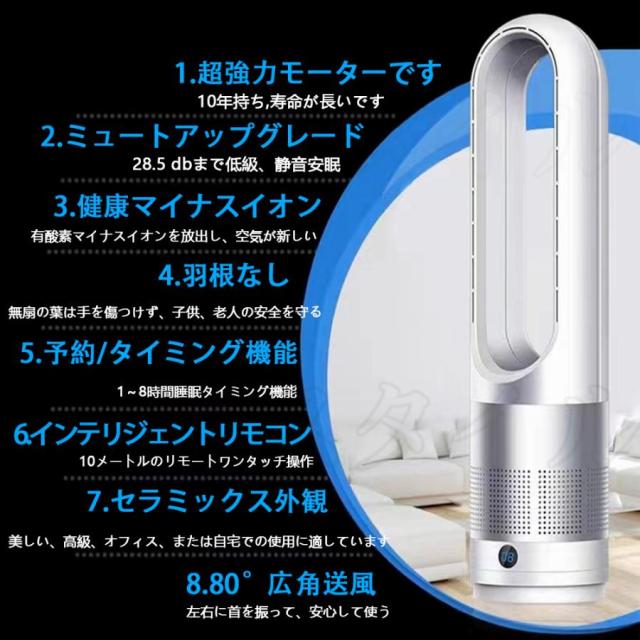 冷風機 扇風機 羽なし 温冷風扇 空気清浄機 セラミックヒーター 冷暖風切替 静音 冷暖タイプ おしゃれ ヒータータワーファンリモコン付き 自動首振り 省エネ