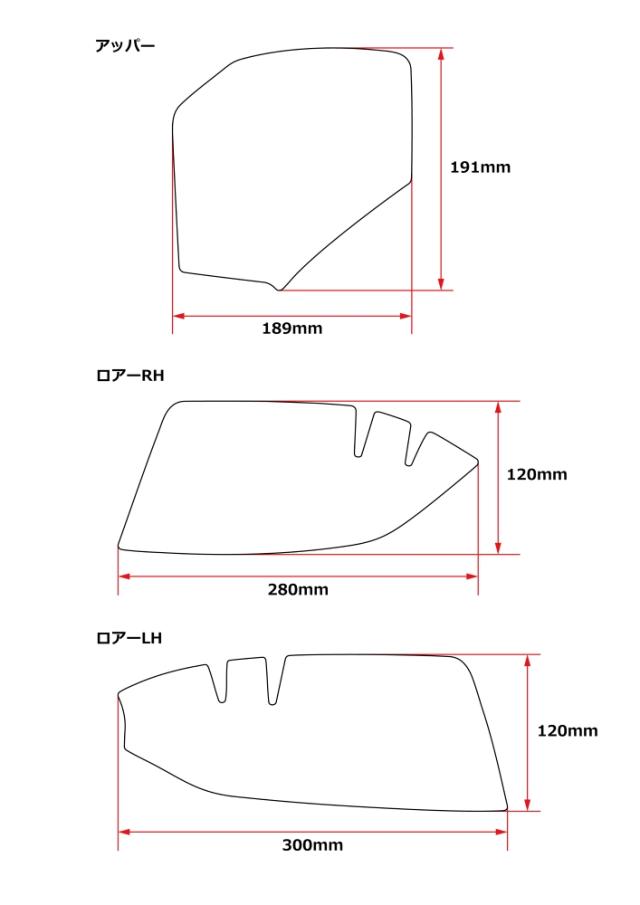 | 構成部品 | ・キックガード本体 アッパー ・キックガード本体 ロアーLH ・キックガード本体 ロアーRH ・説明書類 |