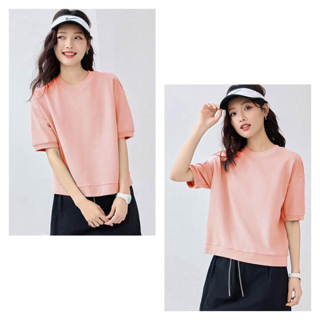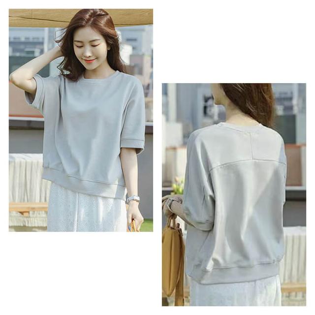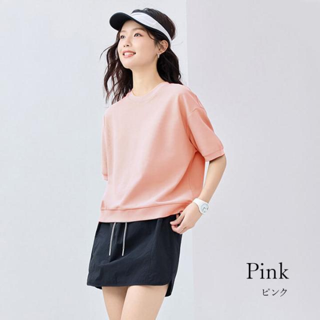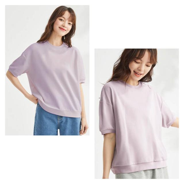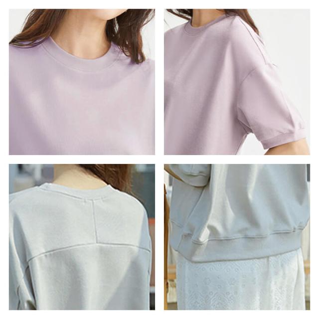 Tシャツ レディース 半袖 綿100% 大きいサイズ トップス カジュアル コットン 着痩せ 丸首 クルーネック 大きめ シルエット ゆったり ショート丈 華奢見え シンプル ストレスフリー 無地 大人可愛い 大人カジュアル やわらか 春 夏 リラックス 共布 ミドル丈 10代