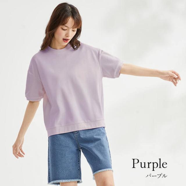 Tシャツ レディース 半袖 綿100% 大きいサイズ トップス カジュアル コットン 着痩せ 丸首 クルーネック 大きめ シルエット ゆったり ショート丈 華奢見え シンプル ストレスフリー 無地 大人可愛い 大人カジュアル やわらか 春 夏 リラックス 共布 ミドル丈 10代 20代 30代 40代 50代 ブラック 黒 クリーム 肌 グレー 灰 ピンク 桃 パープル 紫 イエロー 黄 M L XL 9号 11号 13号 rt20428
