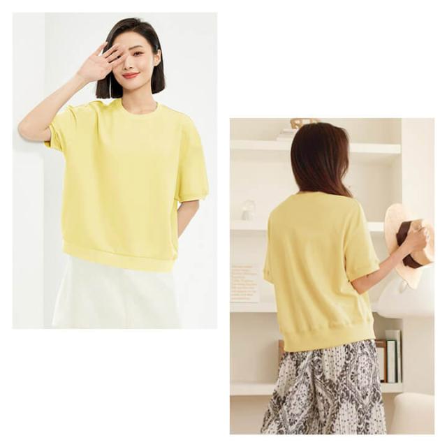 ■取扱商品の特徴: Tシャツ レディース 半袖 綿100% 大きいサイズ トップス カジュアル コットン 着痩せ 丸首 クルーネック 大きめ シルエット ゆったり ショート丈 華奢見え シンプル ストレスフリー 無地 大人可愛い 大人カジュアル やわらか 春 夏 リラックス 共布 ミドル丈 10代 20代 30代 40代 50代 ブラック 黒 クリーム 肌 グレー 灰 ピンク 桃 パープル 紫 イエロー 黄 M L XL 9号 11号 13号 rt20428