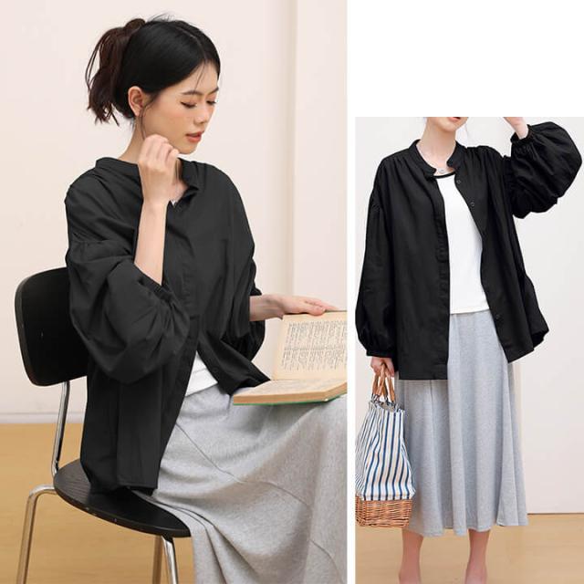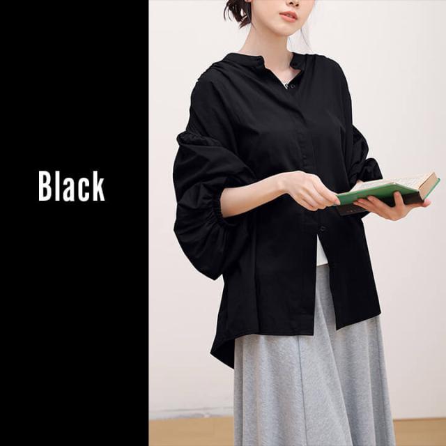 シャツ カジュアル レディース 長袖 カジュアルシャツ ミドル丈 ゆったり ゆとり シンプル 無地 羽織 綿100% 着痩せ リラックス シルエット 体型カバー 華奢見え 大人可愛い 大人カジュアル 楽々コーデ 春 夏 秋 10代 20代 30代 40代 50代 ブラック 黒 ブ