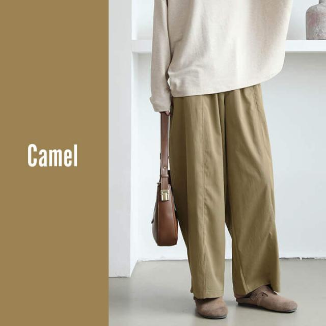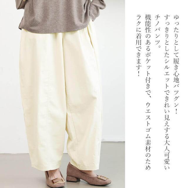 パンツ レディース チノパンツ ワイド ワイドパンツ 春 夏 ポケット ロング ゆったり かわいい ボトムス ウエスト ゴム素材 着痩せ 体型カバー 大きいサイズ オシャレ らくらく かっこいい 20代 30代 40代 50代 オールシーズン ロングシーズン チノパン ブラック 黒 キャメル 茶 黄 クリーム 肌 グレー 灰 M L rt9365