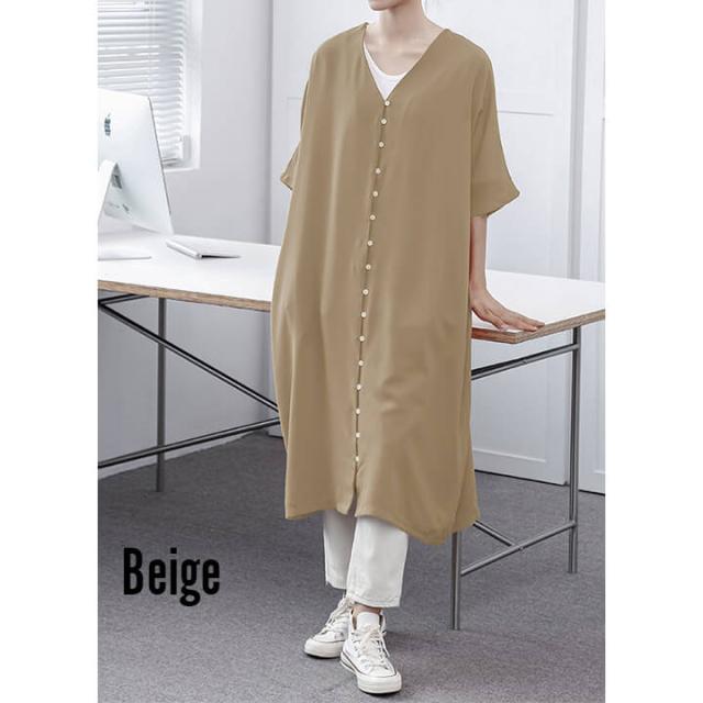 ■取扱商品の特徴: シャツワンピース 春 夏 秋 大きいサイズ ロング マキシ丈 レディース シャツワンピ ワンピース Vネック きれいめ 半袖 おしゃれ 可愛い カジュアル シンプル 大きめ ゆったり すっきり レイヤード 着回し力 膝下丈 体型カバー 大人 ママ 20代 30代 40代 50代 ギフト オーバーサイズ 普段使い 低身長 ドレープ 落ち感 M L 9号 11号 ベージュ 肌色 ブラック 黒 ブルーグレー 青灰 ブラウン 茶色 オレンジ 橙色 rt9121