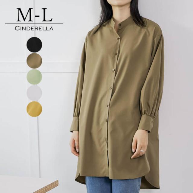 トップス レディース カジュアル シャツ バンドカラーシャツ バンドカラー ロング丈 着痩せ 大きめ 大きいサイズ スリット シルエット ゆったり ゆとり シンプル 無地 大人可愛い 大人カジュアル やわらか 落ち感 長袖 春 秋 冬 体型カバー 二の腕カバー リラックス カフス 華奢見え ビックシルエット 10代 20代 30代 40代 50代 ブラック 黒 ブラウン 茶色 グリーン 緑 ホワイト 白 イエロー 黄 M L 9号 11号 rt9210