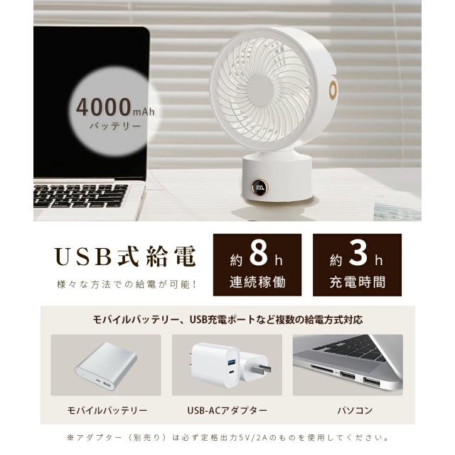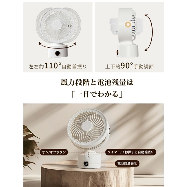 卓上 扇風機 コードレス サーキュレーター 静音 DCモーター 左右首振り 角度調節 液晶LEDディスプレイ コンパクト ポータブル 軽量 携帯 小型 扇風機 4000mAh大容量バッテリー 最大24時間連続使用 寝室 デスク オフェス アウトドア 熱中症対策