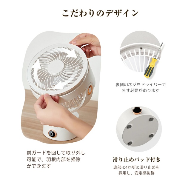 ◆前面ガードは回すだけで簡単に取り外すことができ、羽根の汚れやホコリを払い落とし、常に清潔な風を送ります。(※裏側のネジをドライバーで外す必要があります。ドライバーは別途ご用意ください。)