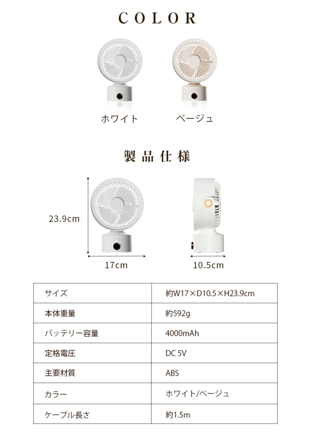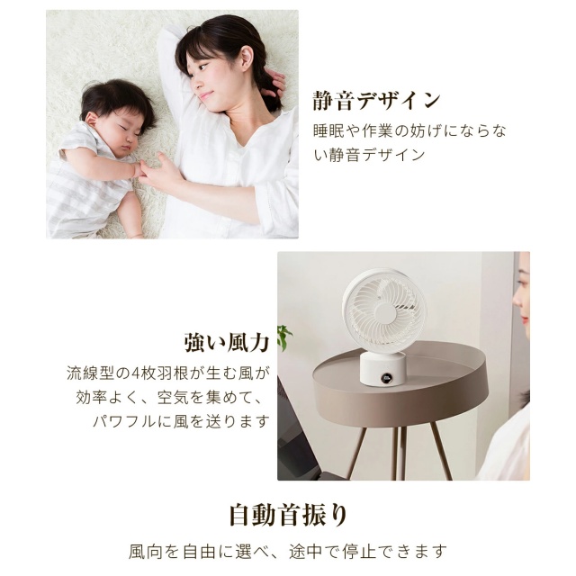 ◆このコードレス卓上扇風機は最新のブラシレスDCモーターを採用しており、静音性を実現しています。従来のモデルと比較して、騒音が80%減少しましたので、静かな環境でも快適に使用できます。