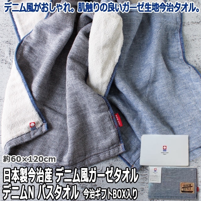 日本製今治産 デニム風ガーゼタオル デニムN バスタオル/今治ギフトBOX入り 今治タオル 60×120cm 高吸水 やわらか ウォッシュアウト感 メンズタオル